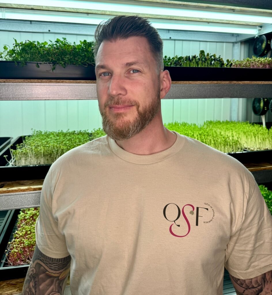 Les couleurs, mêlant verts naturels et touches de rose profond, rappellent les nuances que l’on retrouve dans les micro-pousses, entre fraîcheur végétale et vitalité. Cet ensemble crée une identité visuelle douce, moderne et authentique, parfaitement alignée avec l’univers QSF et l’attention portée à chaque étape de la pousse.